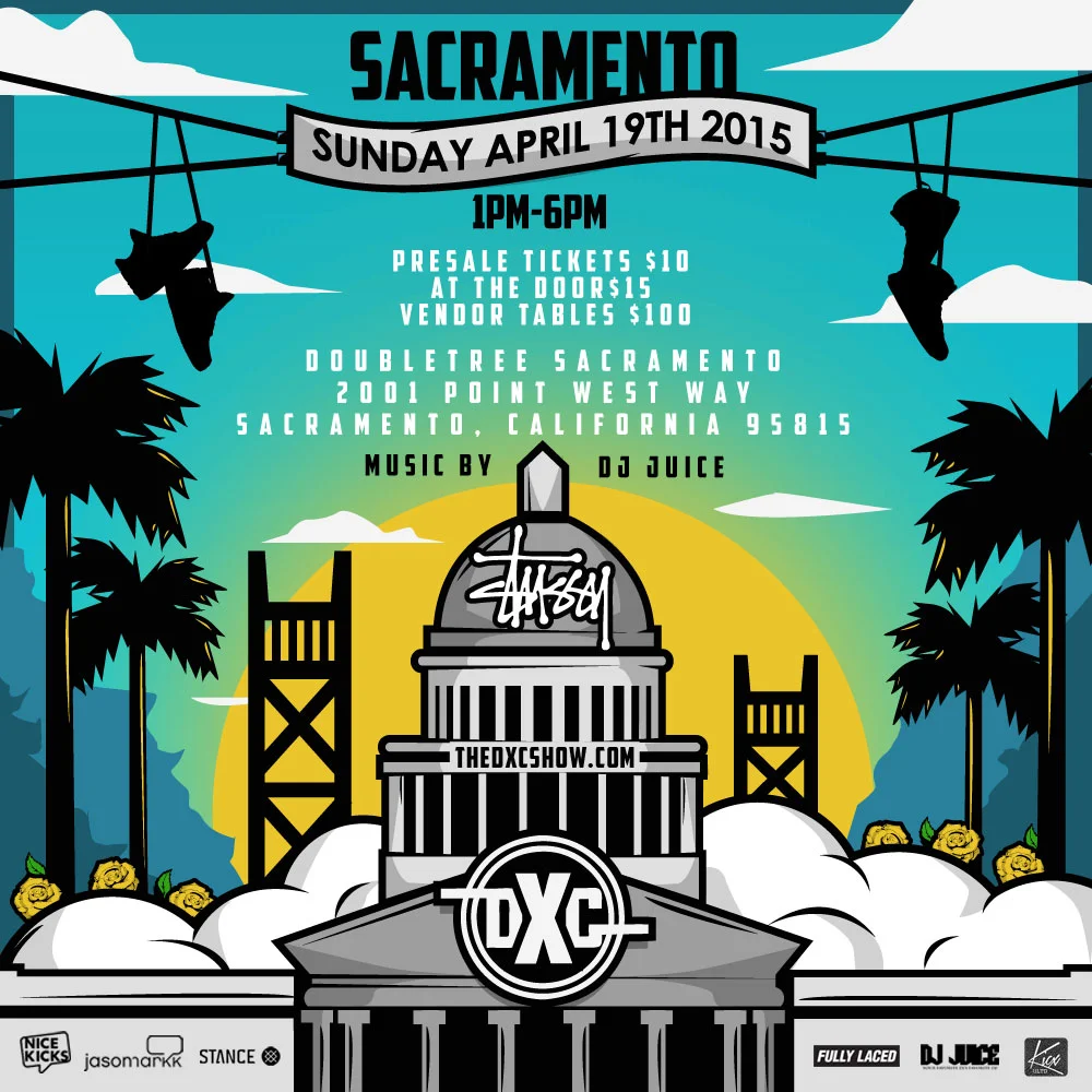 Sacramento DXC Sunday, April 19, 2015 1:00 PM 6:00 PM 13:00 18:00 Sacramento Double Tree 2001 Point W Way Sacramento, CA, 95815 United States (map) Google Calendar ICS DXC Sacramento will include a Stussy sample sale Pre-sale tickets vendor space